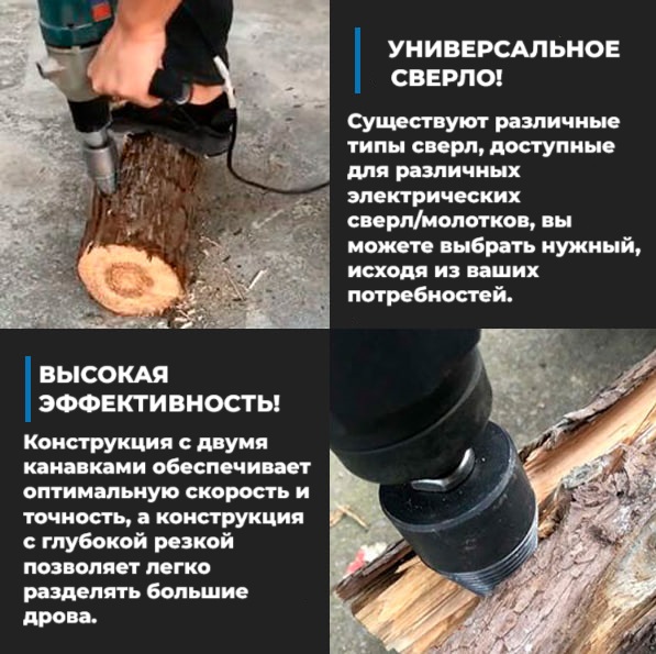 Главный плюс данного сверла - это экономия вашего времени! Сверло обеспечивает высокую точность, которая ослабляет бревна под разными углами, что приводит к повышению эффективности работы и производительности.